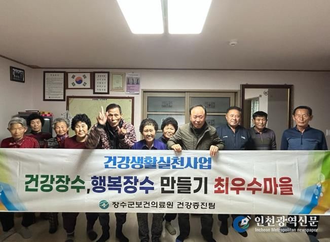 [인천광역신문] 박진 기자 | 장수군보건의료원은 지난해 2월부터 12월까지 총 10개월간 지역 경로당 96개소에서 지역 주민 1,466명을 대상으로 ‘건강장수·행복장수 만들기’ 프로그램을 운영하고, 이를 성공적으로 마무리했다고 2일 밝혔다.
