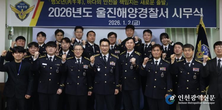 [인천광역신문] 박진 기자 | 울진해양경찰서는 2일, 울진해양경찰서 회의실에서 서장을 비롯한 각 과·계장, 재박 함·정장이 참석한 가운데 2026년도 시무식을 개최했다.
