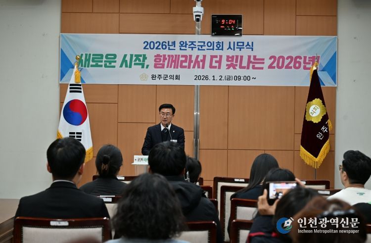 [인천광역신문] 박진 기자 | 완주군의회는 2일, 의회 문화강좌실에서 2026년 시무식을 열고 새해 의정활동의 힘찬 출발을 알렸다.