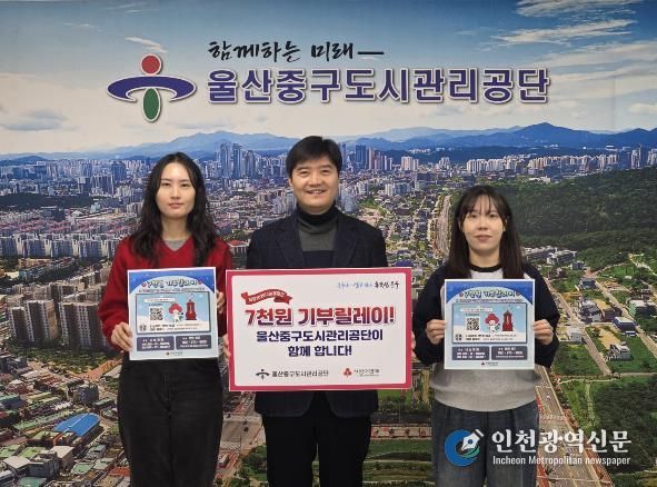 [인천광역신문] 박진 기자 | 울산중구도시관리공단이 울산사회복지공동모금회가 주관하는 희망 2026 나눔 캠페인 ‘7천 원 기부 릴레이’에 동참했다.