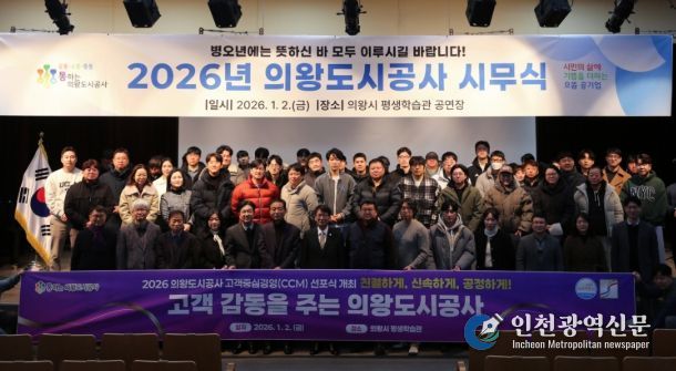 [인천광역신문] 박진 기자 | 의왕도시공사가 1월 2일 의왕시 평생학습관 3층 공연장에서 고객중심경영(CCM)을 실천하기 위한 선포식을 개최했다.