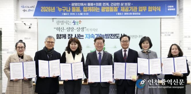 시는 5일 시청 중회의실에서 관내 한의원, 의원, 요양센터 등 41개 돌봄서비스 기관과 ‘누구나 돌봄, 함께하는 광명돌봄’ 서비스 업무협약을 체결했다.
