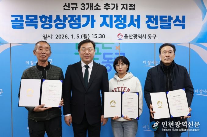 [인천광역신문] 박진 기자 | 울산 동구는 1월 5일 오후 3시 30분 구청장실에서 골목상권 활성화를 위한 골목형 상점가 지정서 전달식 및 상인회장 간담회를 개최하고, 동구지역 골목형 상점가 3개소를 추가 지정했다.
