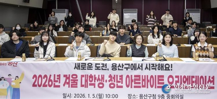 [인천광역신문] 박진 기자 | 서울 용산구는 5일 구청 중회의실에서 ‘2026년 동계 대학생‧청년 아르바이트 오리엔테이션’을 열고, 한 달간의 행정 체험을 시작했다고 밝혔다. 이날 행사에는 선발된 대학생·청년 아르바이트생 40여 명이 참석했다.