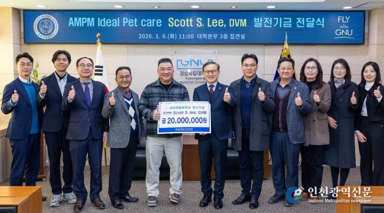[인천광역신문] 박진 기자 | 경상국립대학교는 미국 ‘AMPM Ideal Pet Care(에이엠피엠 아이디얼 동물병원)’의 이시경(Scott S. Lee) 원장이 대학발전기금 2000만 원을 기부했다고 밝혔다.