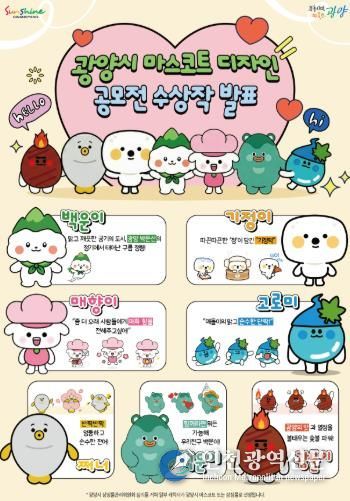 최우수상에는 매화꽃 모자를 쓴 양 캐릭터 ‘매향이’가 선정됐으며, 우수상은 백운산 모자를 쓴 구름 정령 ‘백운이’와 광양의 먹거리인 기정떡을 형상화한 ‘기정이’가 각각 수상했다.