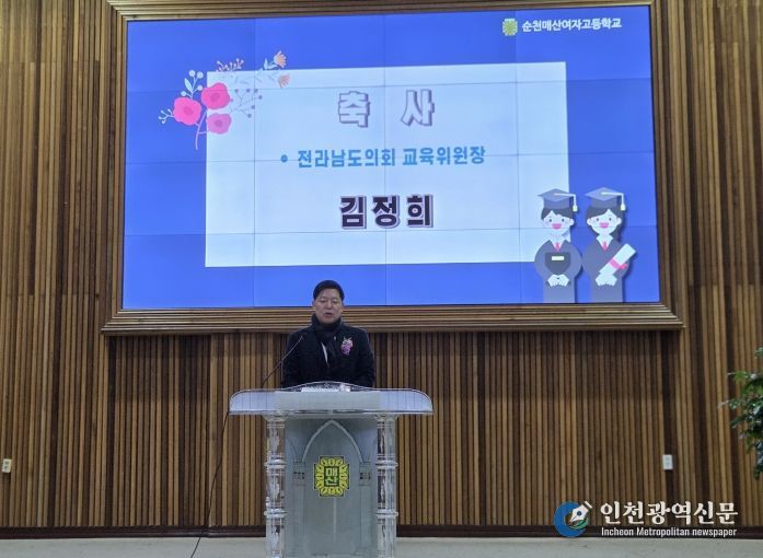 [인천광역신문] 박진 기자 | 김정희 전남도의회 교육위원장은 1월 6일 순천매산여자고등학교에서 열린 제75회 졸업식에 참석해 졸업생들의 새로운 출발을 축하하고, 전남교육의 미래를 향한 도의회 교육위원회의 지원 의지를 밝혔다.
