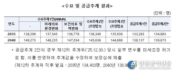 한편, 이날 보정심에 보고된 수급추계 결과는 다음과 같다.