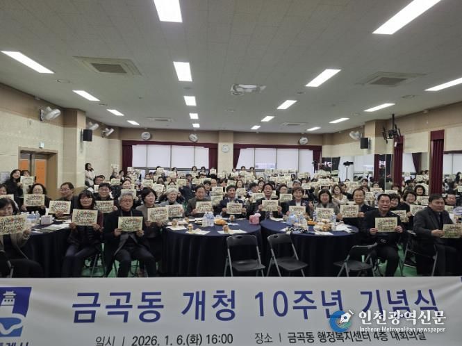 [인천광역신문] 박진 기자 | 2026년 개청 10주년을 맞은 권선구 금곡동은 지난 6일 지역구 의원과 주민 등 100여 명이 참석한 가운데 주민자치회 및 통장협의회와 함께 10주년 기념행사를 개최했다.
