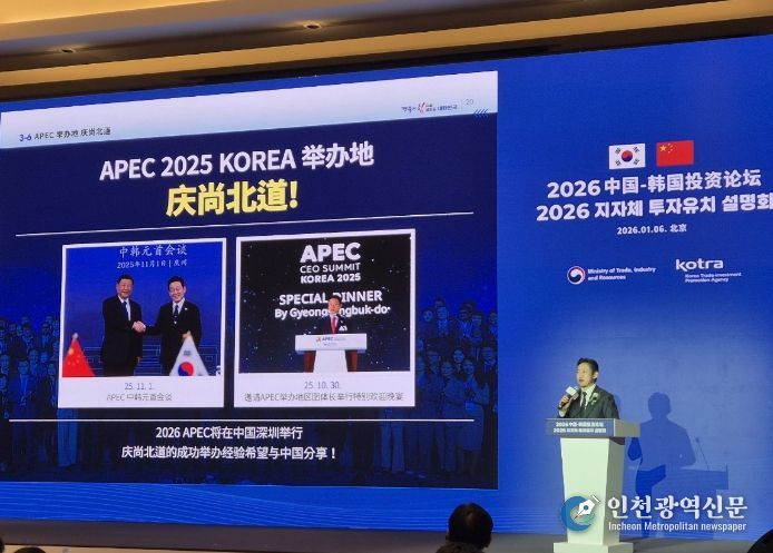 [인천광역신문] 박진 기자 | 경상북도는 6일 중국 베이징에서 열린 산업통상부 주관 지자체 투자유치 설명회에 참가해 중국 기업과 투자자를 대상으로 경상북도의 투자환경과 미래 협력 전략을 집중적으로 소개했다.