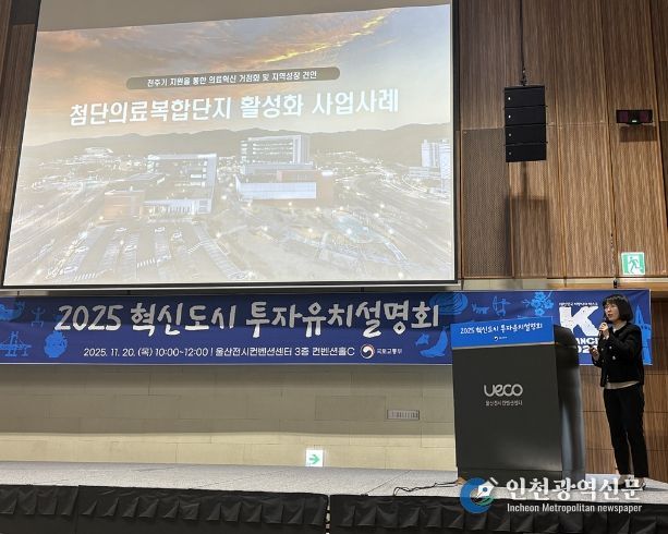 재단은 지난해 11월 울산전시컨벤션센터에서 열린 ‘2025 혁신도시 투자유치설명회’에서 혁신도시 투자유치 및 기업지원 우수사례 기관으로 선정됐으며 박은희 부장이 ‘첨단의료복합단지 활성화 사업사례’를 주제로 발표했다.