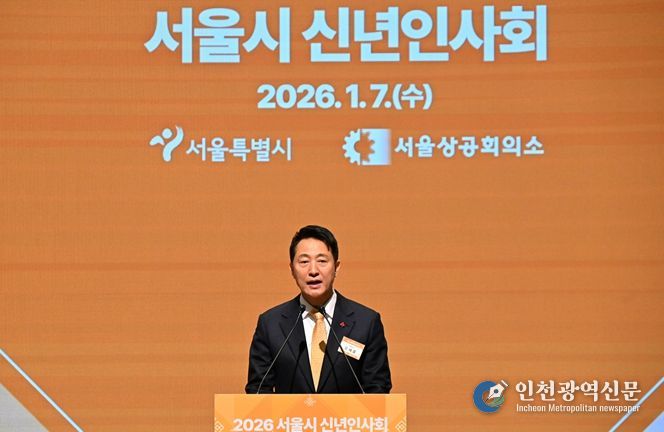 [인천광역신문] 박진 기자 | 오세훈 서울시장은 7일 오전 10시 대한상공회의소 국제회의장(중구 세종대로39)에서 열린 ‘2026년 서울시 신년인사회’에 참석해 정‧관‧재계 인사들과 병오년(丙午年) 새해 인사를 나눴다.