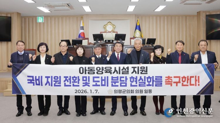 [인천광역신문] 박진 기자 | 의령군의회는 지난 7일 열린 제296회 임시회 제1차 본회의에서 김봉남 의원이 대표 발의한 ‘아동양육시설 운영비 국고보조 전환 및 도비 분담 현실화 촉구 대정부 건의안’을 만장일치로 채택했다.