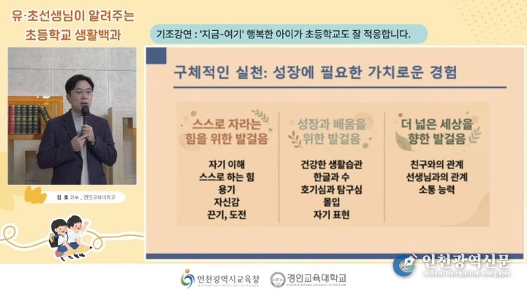 [인천광역신문] 박진 기자 | 인천광역시교육청은 7일, '지역 기반형 유아교육·보육 혁신 지원 사업'의 일환으로 경인교육대학교 주관의 ‘이음교육 공감 콘서트–유·초 선생님이 알려주는 초등학교 생활 백과'를 운영했다.