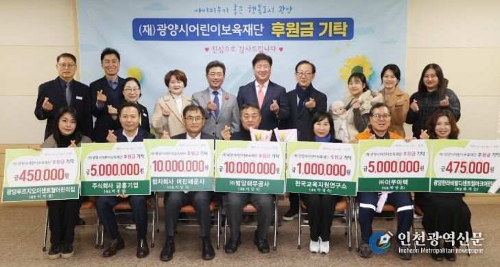 [인천광역신문] 박진 기자 | (재)광양시어린이보육재단은 1월 7일 이광용 이사장, 기탁자 등 관계자 20여 명이 참석한 가운데 후원금 기탁식을 개최했다.