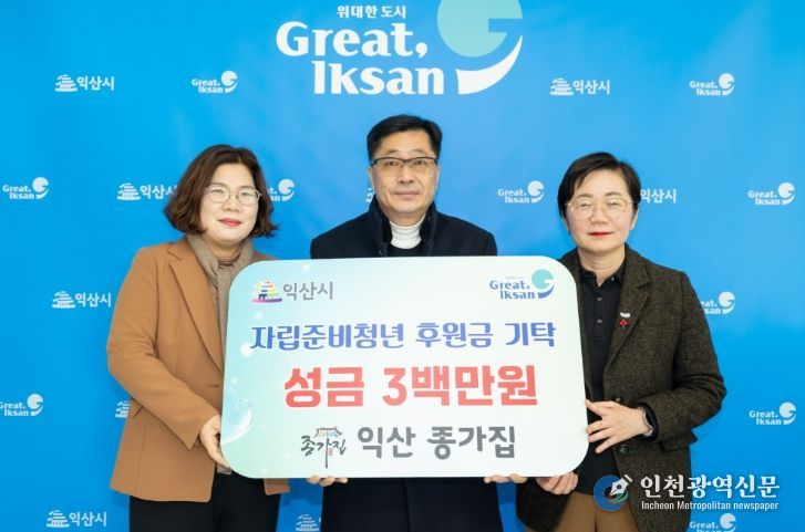 익산시는 8일 '종가집(대표 김경일)'으로부터 자립준비청년을 위한 성금 300만 원을 기탁받았다.