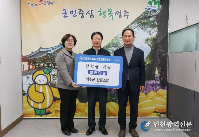 [인천광역신문] 박진 기자 | 지난 7일 성주군 산립조합에서 지역인재를 위한 장학금 1천만원을 (재)성주군별고을장학회에 기탁했다.