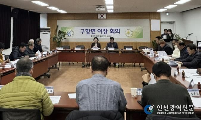 이날 회의에서는 배미자 구항면장을 비롯한 각 마을 이장 등이 참석하여 새해 인사를 나누며 한 해 동안의 건강과 마을의 안녕을 기원하고, 주민 화합과 지역 발전을 위한 각오를 다지는 시간을 가졌다.