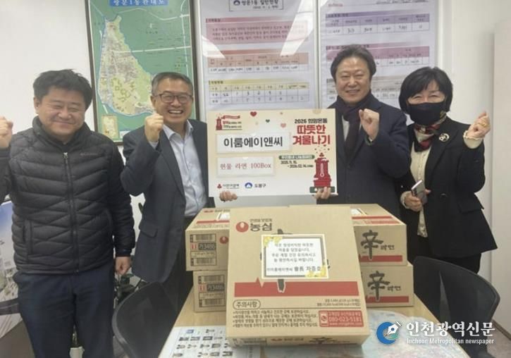 [인천광역신문] 박진 기자 | 서울 도봉구 쌍문1동은 지난해 12월 17일 ㈜이룸에이앤씨로부터 라면 100박스(225만 원 상당)를 전달받았다. 라면 100박스는 현재 지역 내 취약계층 100여 가구에 순차적으로 전달되고 있다.