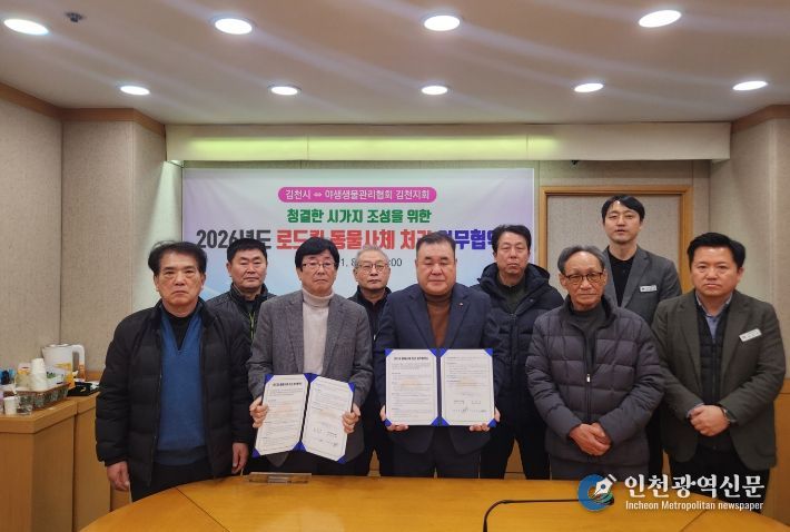 [인천광역신문] 박진 기자 | 김천시는 지난 8일 ‘로드킬 동물사체 처리 상시기동반’운영을 위해 야생생물관리협회 김천지회와 로드킬 처리 업무협약을 체결했다.