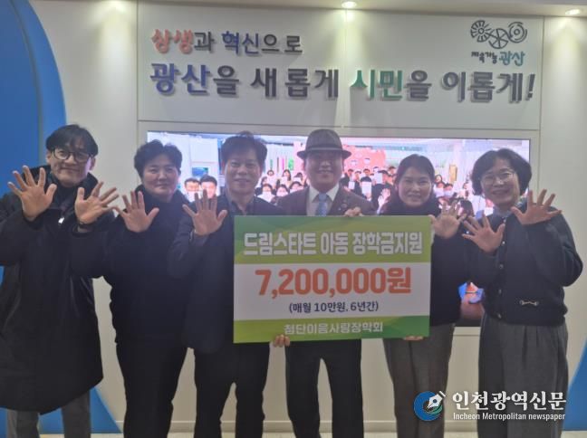 [인천광역신문] 박진 기자 | 광주 광산구 첨단이음사랑장학회가 지역 청소년들을 위해 장학금을 지원했다.