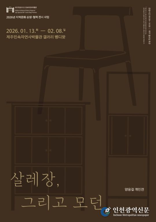 [인천광역신문] 박진 기자 | 제주민속자연사박물관은 ‘지역문화 상생·협력 전시 사업’의 일환으로 1월 13일부터 2월 8일까지 갤러리 벵디왓에서 양웅걸 개인전 '살레장, 그리고 모던'을 개최한다.