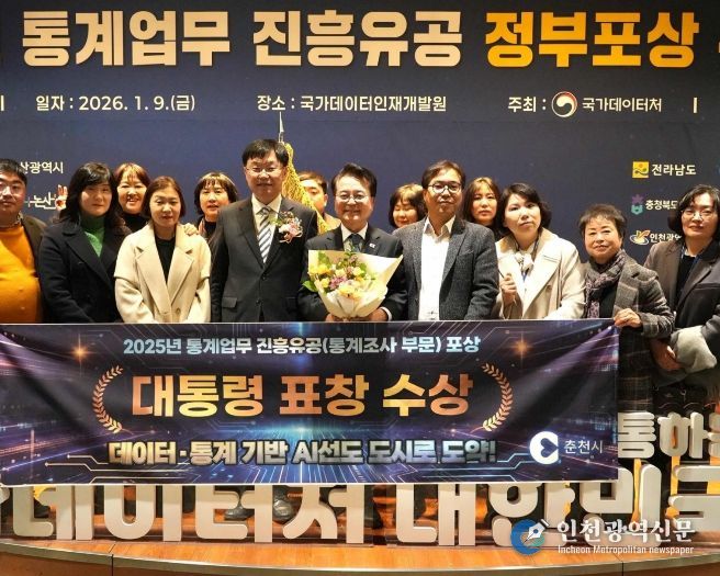 [인천광역신문] 박진 기자 | 춘천시가 9일 2025년 통계업무 유공을 인정받아 강원특별자치도 18개 시군 중 최초로 대통령 표창을 수상했다.