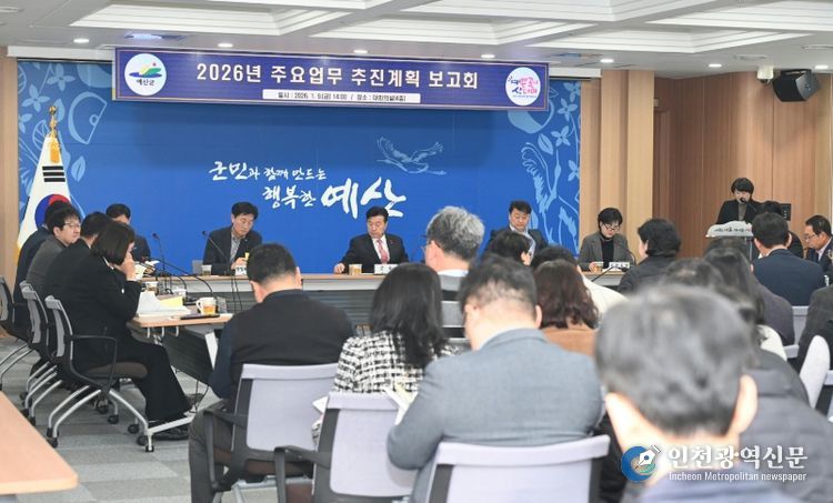 [인천광역신문] 박진 기자 | 예산군은 9일 군청 대회의실에서 ‘2026년도 주요업무 추진계획 보고회’를 열고 향후 군정 운영 방향과 분야별 주요 시책을 공유했다.