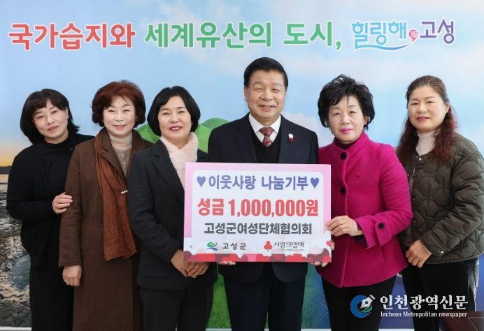 [인천광역신문] 박진 기자 | 고성군은 고성군여성단체협의회(회장 최외숙)가 1월 8일 고성군청을 방문해 소외계층을 위한 이웃돕기 성금 100만 원을 기탁했다고 밝혔다.
