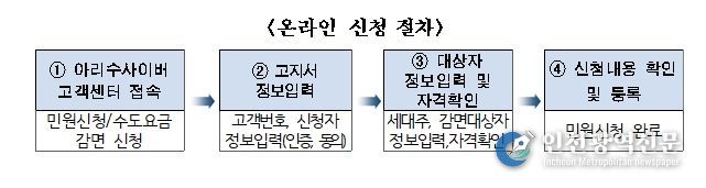신청방법은 방문신청 또는 온라인신청이 가능하다. 방문 신청은 1월 12일부터 감면받을 주소지 관할 동주민센터에서 우선 접수하며, 온라인 신청은 3월 3일부터 서울아리수본부 누리집 내 아리수 사이버고객센터에서 할 수 있다.
