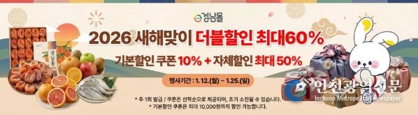 [인천광역신문] 박진 기자 | 경상남도와 (재)경상남도투자경제진흥원이 운영하는 e경남몰(egnmall.kr)에서 12일부터 예산 소진 시까지 2026년 신년맞이 할인 기획전을 시작한다.