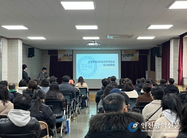 [인천광역신문] 박진 기자 | 전북특별자치도(전주·서울)장학숙은 10일 전주장학숙에서 예비대학생과 학부모 등을 대상으로‘2026년 입사설명회’를 성황리에 개최했다고 11일 밝혔다.