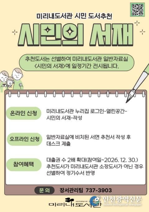 [인천광역신문] 박진 기자 | 원주시 미리내도서관은 시민의 목소리를 담은 도서 추천 공간 ‘시민의 서재’를 연중 운영하고 있다.