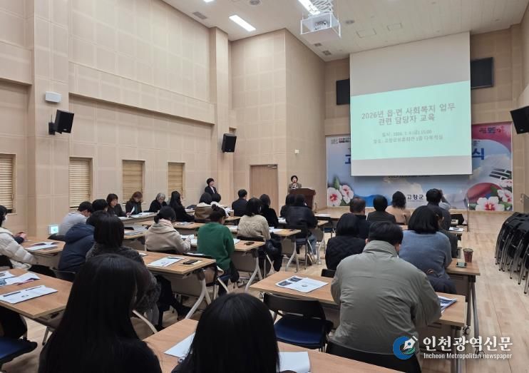 [인천광역신문] 박진 기자 | 고창군이 지난 9일 고창군보훈회관 1층 다목적실에서 읍·면 사회복지 업무 담당자 30여 명을 대상으로 2026년 사회복지사업 추진방향 교육과 공유의 시간을 가졌다.