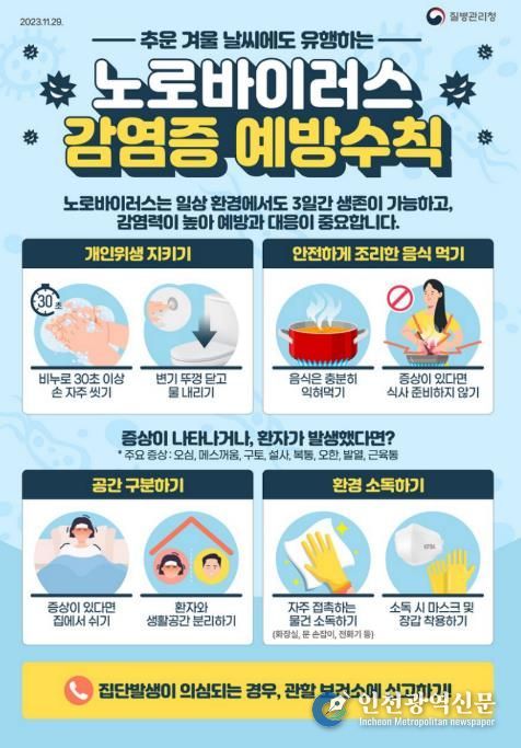 [인천광역신문] 박진 기자 | 오산시보건소는 최근 기온 하강으로 겨울철에 주로 발생하는 노로바이러스 감염증의 유행 가능성이 높아짐에 따라 시민들에게 각별한 주의를 당부했다.