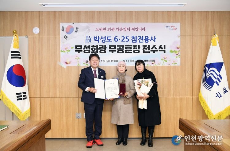 [인천광역신문] 박진 기자 | 부산 동래구는 지난 9일 6․25전쟁에 참전해 무공을 세운 고(故) 박성도님의 자녀인 박순자 씨(수민동 거주)에게 무성화랑 무공훈장과 훈장증을 전수했다고 밝혔다.