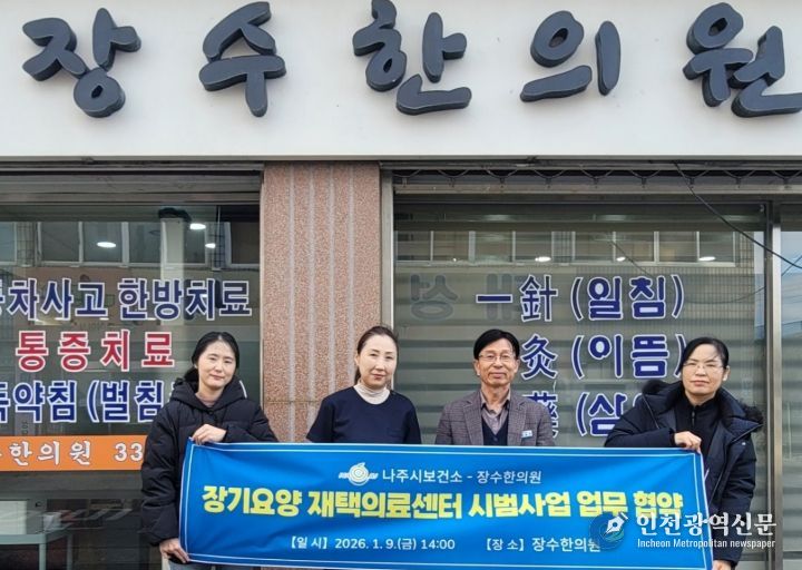 [인천광역신문] 박진 기자 | 전라남도 나주시는 지난 9일 남평읍에 있는 장수한의원(원장 박소영)과 ‘장기요양 재택의료센터 시범사업’ 추진을 위한 업무협약을 체결했다고 밝혔다.
