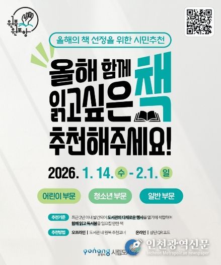 [인천광역신문] 박진 기자 | 포항시는 ‘2026년 포항시 올해의 책’을 선정하기 위해 오는 14일부터 내달 1일까지 후보 도서를 추천받는다.