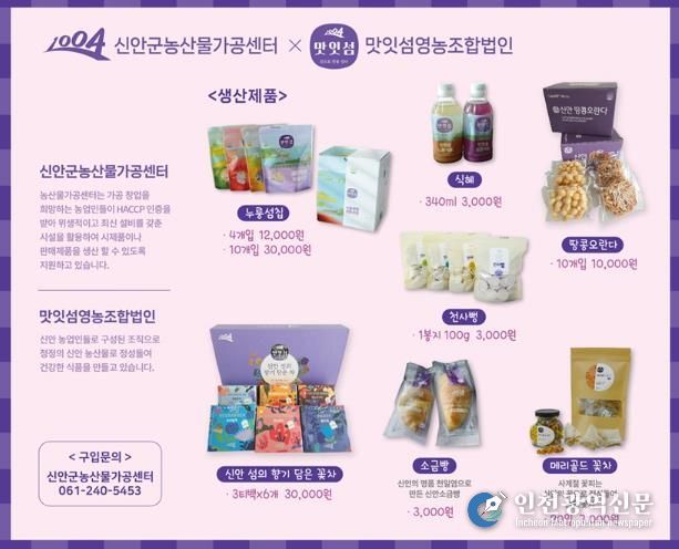 맛잇섬영농조합법인은 농산물가공센터를 거점으로 신안군의 우수 농수특산물을 활용한 누룽섬칩, 퍼플식혜, 신안땅콩강정, 꽃차, 신안소금빵 등 7개 유형 32품목의 가공식품을 제조·판매하고 있으며, 현재 가공창업을 희망하는 조합원 27명이 활발히 활동 중이다.