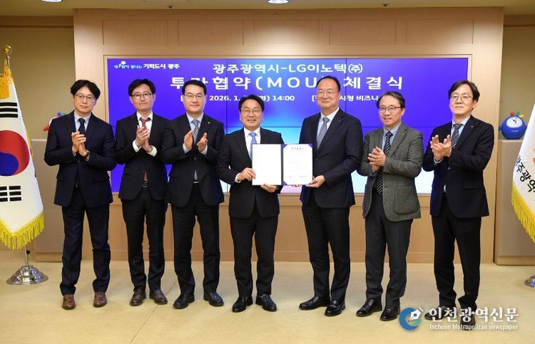 [인천광역신문] 박진 기자 | 광주광역시와 LG이노텍은 13일 시청 비즈니스룸에서 ‘차량용 제어모듈 신규 생산라인 구축을 위한 투자협약’을 체결했다. 이번 협약은 2026년 새해 부강한 광주로의 힘찬 도약을 알리는 첫 신호탄이다.