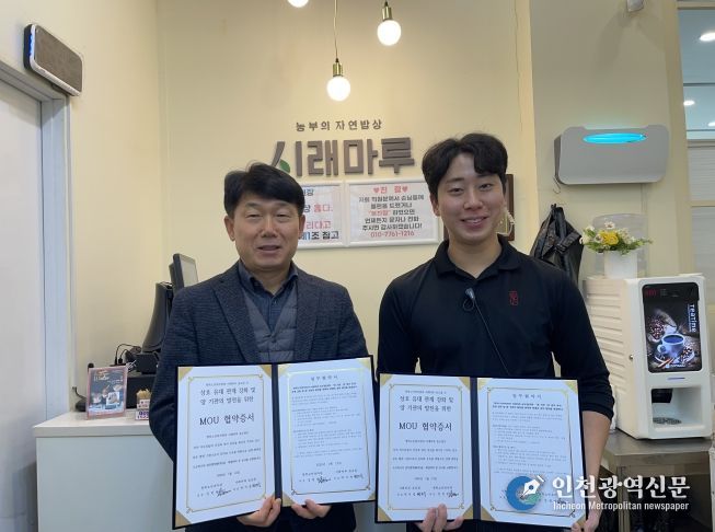 [인천광역신문] 박진 기자 | 청학노인복지관과 시래마루 송도점이 지난 12일 지역사회 어르신 복지 증진과 나눔 문화 확산을 위한 업무협약을 체결했다.