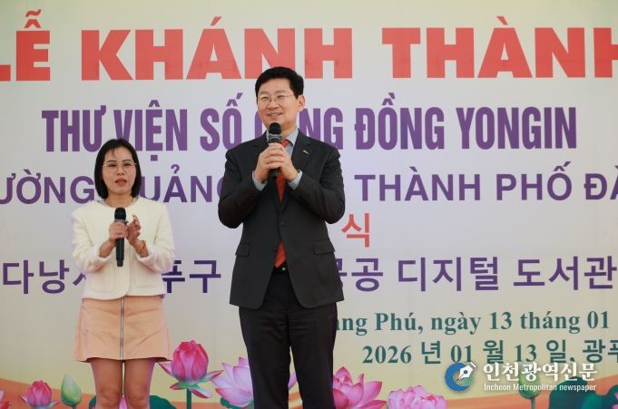 [인천광역신문] 박진 기자 | 이상일 용인특례시장은 13일(현지 시각) 다낭시 광푸구에 위치한 사단법인 국제연꽃마을 복지타운에서 용인특례시가 공적개발원조(ODA) 사업으로 조성한 ‘다낭시 광푸구 용인 공공 디지털도서관’ 준공식에 참석해 축하의 뜻을 전했다.