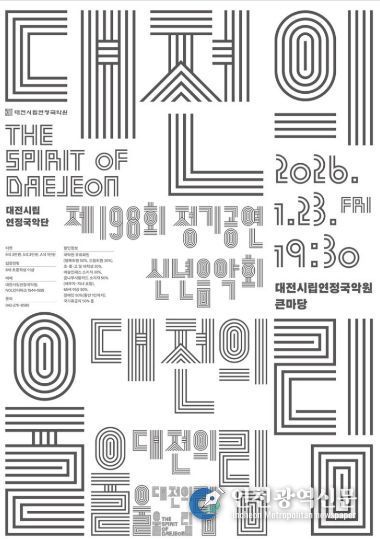 [인천광역신문] 박진 기자 | 대전시립연정국악단은 23일 오후 7시 30분 제198회 정기공연 신년음악회 ‘대전의 울림’을 국악원 큰마당 무대에 올린다.