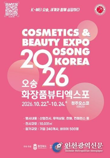 [인천광역신문] 박진 기자 | 충북도와 청주시는 1월 14일부터 화장품·뷰티산업의 트렌드를 선도하고, 국내 화장품 기업의 판로 개척을 지원하는 ‘2026 오송화장품뷰티엑스포’의 참가기업 및 공식후원사 모집을 시작한다.