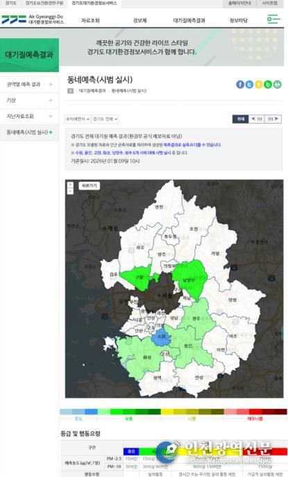 [인천광역신문] 박진 기자 | 경기도보건환경연구원이 ‘동’ 단위까지 대기질 정보를 제공하는 ‘대기질 동네 예측 서비스’를 시작한다고 14일 밝혔다. 현재는 경기도 4개 권역 단위로 미세먼지 예측 결과를 제공하고 있어, 도민의 실제 생활권 대기질 정보를 제공하는 데 한계가 있었다.