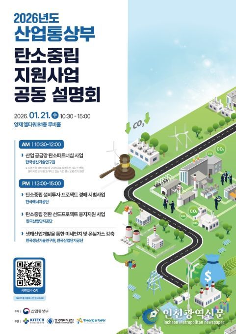 이와 관련 산업부는 1월 21일, 기업들의 관심이 많은 주요 4개 지원사업을 대상으로 ‘2026년도 산업부 탄소중립 지원사업 공동 설명회’도 개최할 예정이다. 이번 설명회에서는 사업별 상세 설명과 질의응답(Q&A)을 통해 기업들의 지원 사업에 대한 이해도를 높이고, 실제 사업 참여로 이어질 수 있도록 적극 지원할 계획이다.