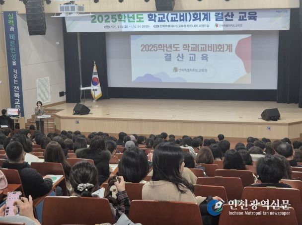 [인천광역신문] 박진 기자 | 전북특별자치도교육청은 2025학년도 학교(교비)회계 결산을 앞두고 13~14일 이틀간 창조나래 시청각실에서 ‘2025학년도 K-에듀파인 학교회계 결산 교육’을 실시했다.