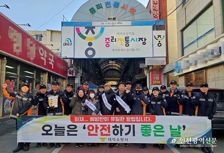 [인천광역신문] 박진 기자 | 대전소방본부(본부장 김문용)는 14일 겨울철 전통시장 화재를 예방하고 안전한 시장 환경을 조성하기 위해, 관내 5개 소방서와 함께 전통시장 화재예방 캠페인을 실시하는 등 안전관리 강화에 나섰다.