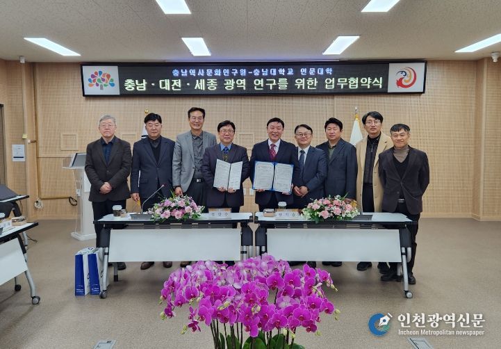 [인천광역신문] 박진 기자 | 충남역사문화연구원(원장 장기승)은 지난 1월 13일 충남대학교 인문대학(학장 정양수)과 ‘충남·대전·세종 초광역 인문사회 연구 강화를 위한 업무협약’을 체결했다.