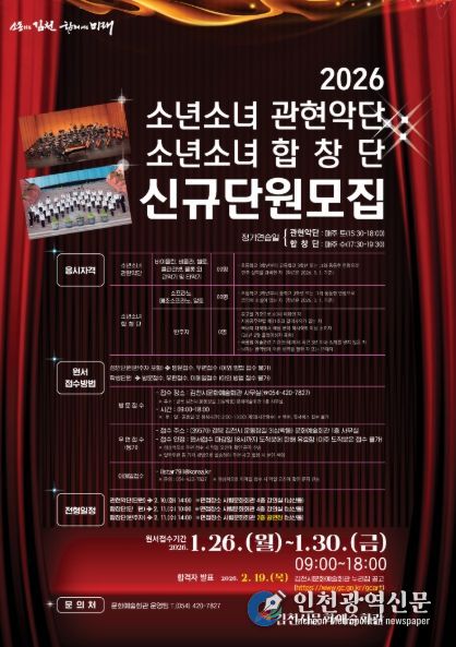 [인천광역신문] 박진 기자 | 김천시 문화예술회관은 김천 문화예술의 미래를 이끌어 갈 시립예술단 신규단원을 모집한다.